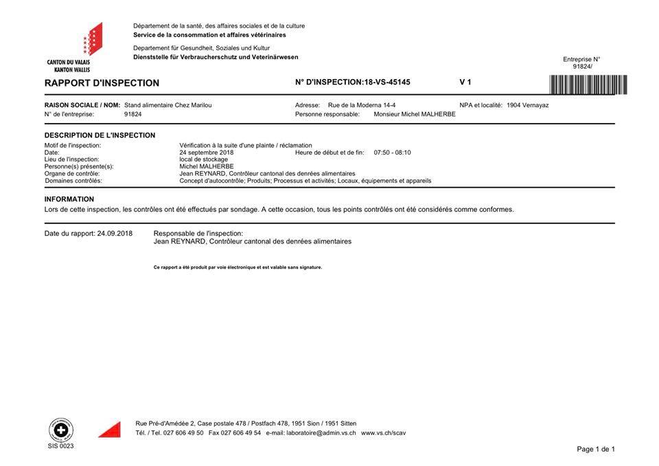 24.09.2018 - Le laboratoire cantonal des affaires vétérinaires, a procédé au contrôle de conformité de notre laboratoire de fabrication et des chambres froides, celui-ci étant en parfaite conformité avec la loi en vigueur.